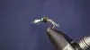 Fly tying the anti static bag, red holographic chromie. A top fly for whenever there's a hatch of Chironomids.