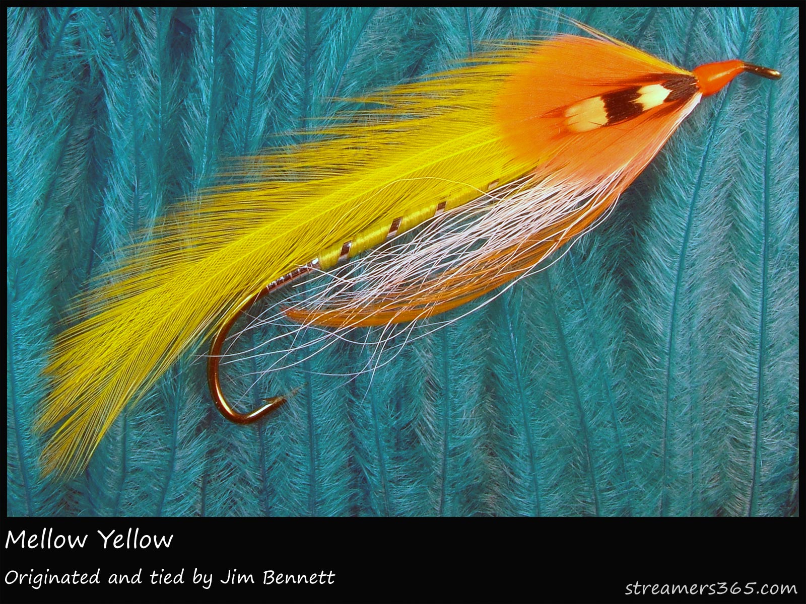 Mellow Yellow - Jim Bennett Tied by: Jim Bennett Originated by: Jim Bennett Hook: Partridge CS15 #4 Thread: Fluorescent red 8/0 Tag: Silver flat...