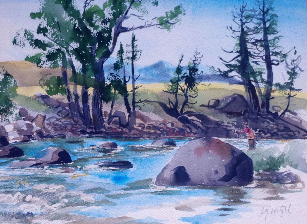 Title: The Boulder River at Ellions, Original Watercolor, size 9" by 12”.